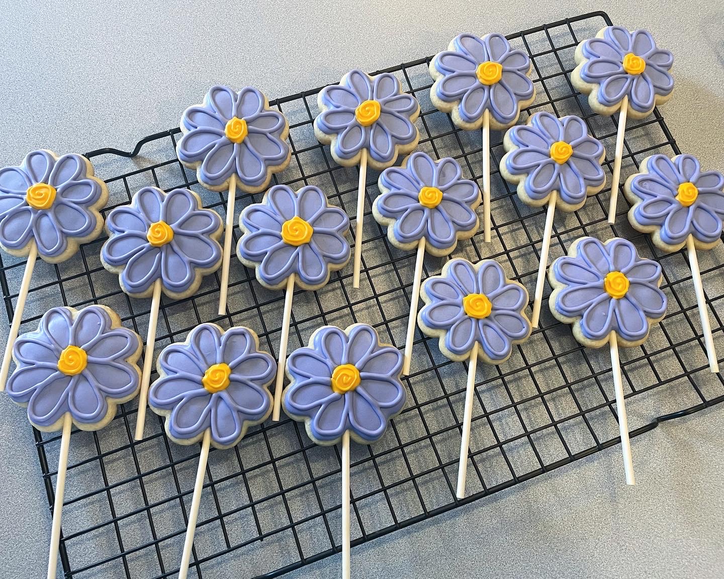 I made these purple flower cookie pops and lemon/raspberry cake pops for some well-deserved teachers to add to their “thank you” bouquets. I enjoyed making them so much that I’m adding them to my menu!